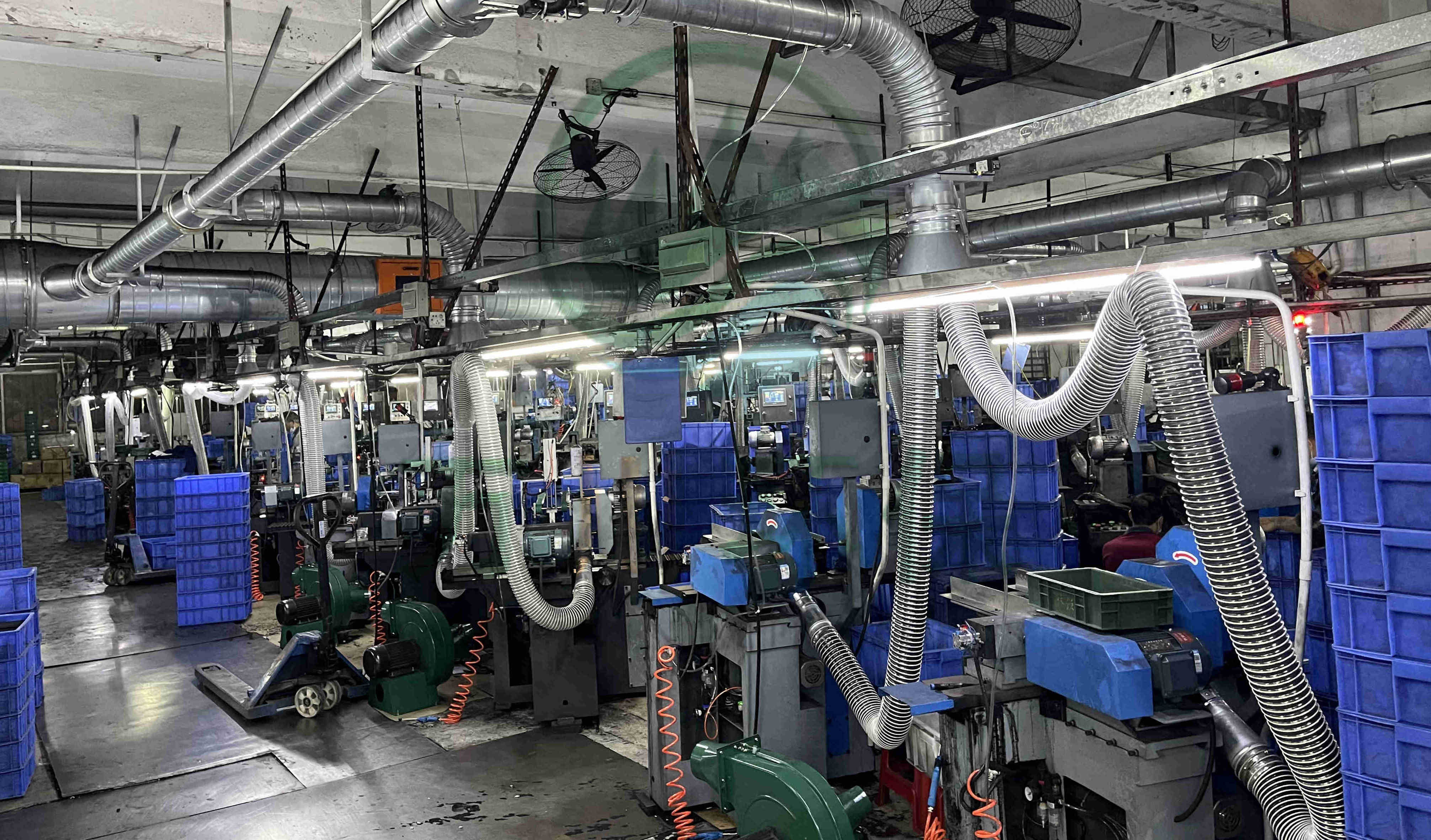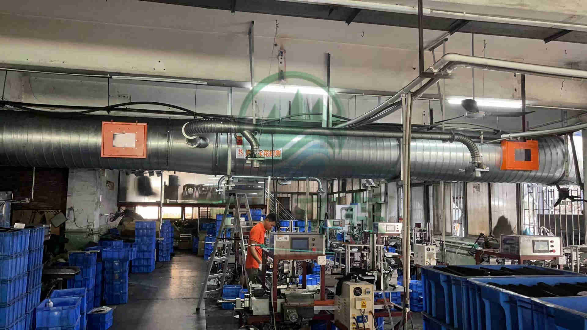 對60臺磨床進行粉塵處理。萬川配套一套64000風量脈沖布袋除塵器+除塵風機+火星探測+隔爆+自動化電控柜系統(tǒng)。