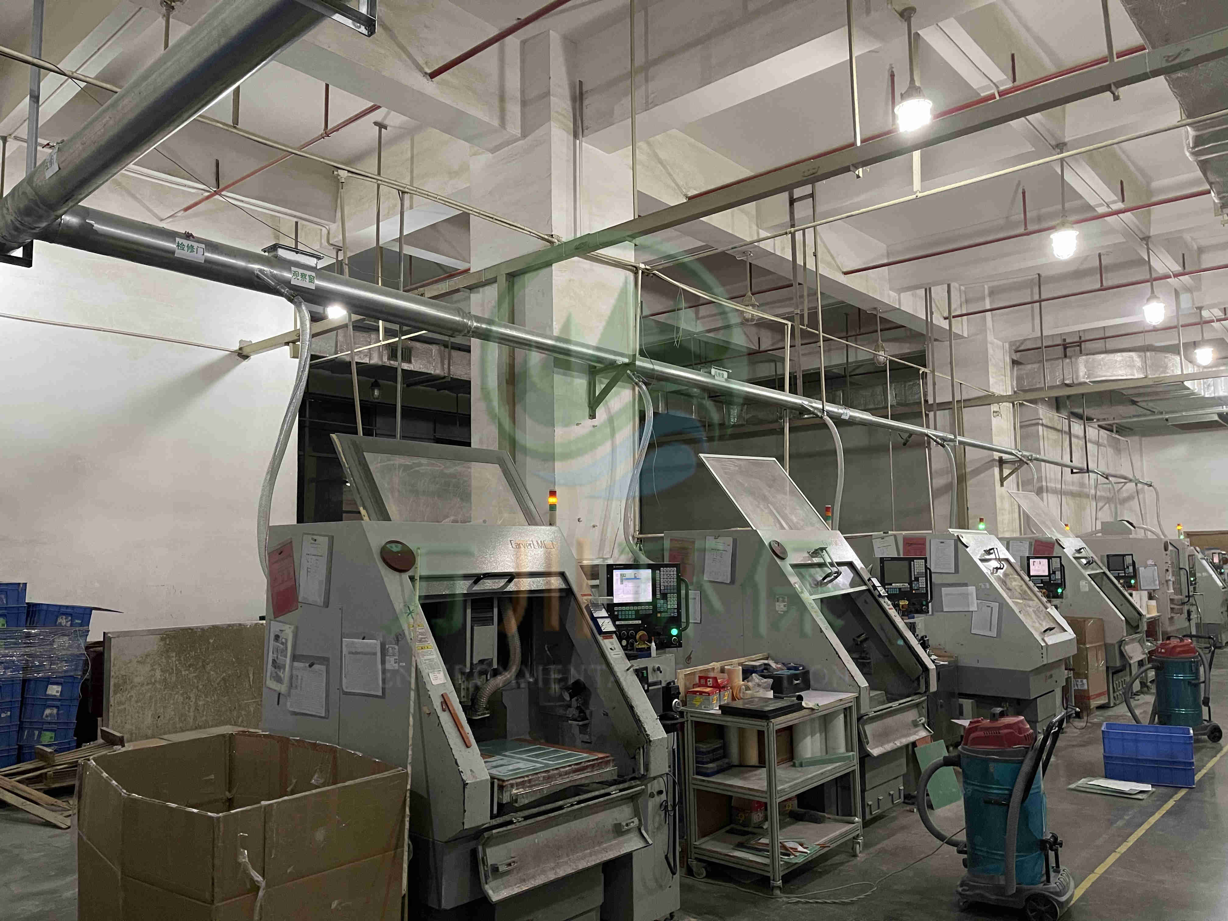 對(duì)車間11臺(tái)精雕機(jī)進(jìn)行中央集塵,改善車間環(huán)境,符合當(dāng)?shù)嘏欧艠?biāo)準(zhǔn)和防爆要求